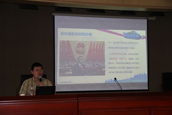 本次培训的主题是“修建行业‘营改增’的应对及挑战”,,约请的是广联达软件的高级培训讲师孙先生。。。。 培训时代,,孙先生对财务部、国家税务总局的《关于周全推开营业税改征增值税试点的通知》(财税〔2016〕36号)文件举行了周全的解读,,叙述了两类身份、两种计税要领以及“三流合一”等“营改增”后的新看法,,并进一步剖析了“营改增”后安徽省工程计价涉税调解的有关情形。。。。最后,,他连系“营改增”对工程造价的影响为企业提出了应对的详细建议。。。。