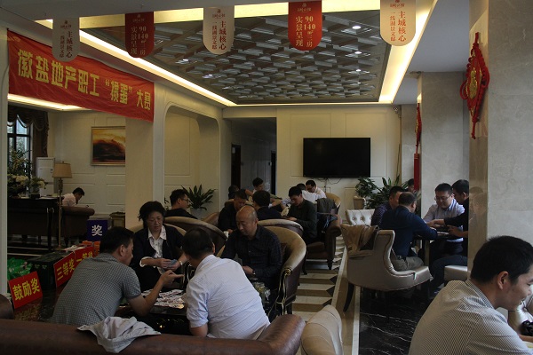 为富厚职工业余生涯,,,,增进内部交流,,,,增进团结协作,,,,增强企业凝聚力,,,,由徽盐地产公司工会主理,,,,六安项目公司承办的“徽盐地产职工掼蛋角逐”于10月20日在六安项目公司徽盐湖公馆营销中心盛大举行。。。
